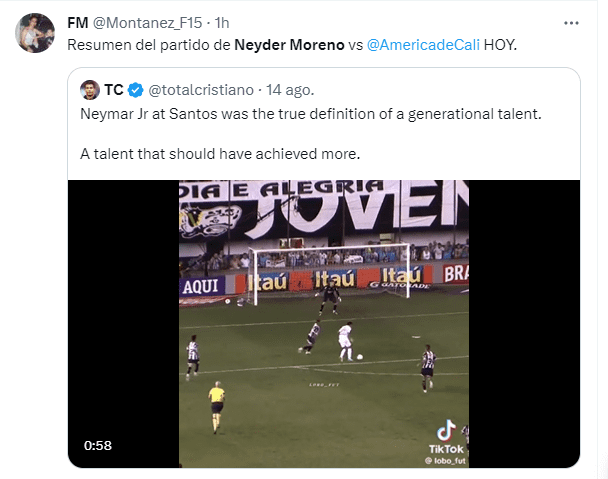 En las redes sociales muchos hinchas de Atlético Nacional tras ver el partidazo que hizo Neyder Moreno comenzaron a decir que estaba como Neymar en sus inicios en suelo carioca, de verdad Moreno jugó bien contra el América de Cali.